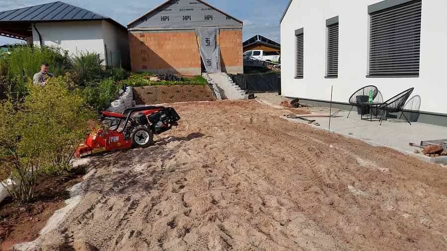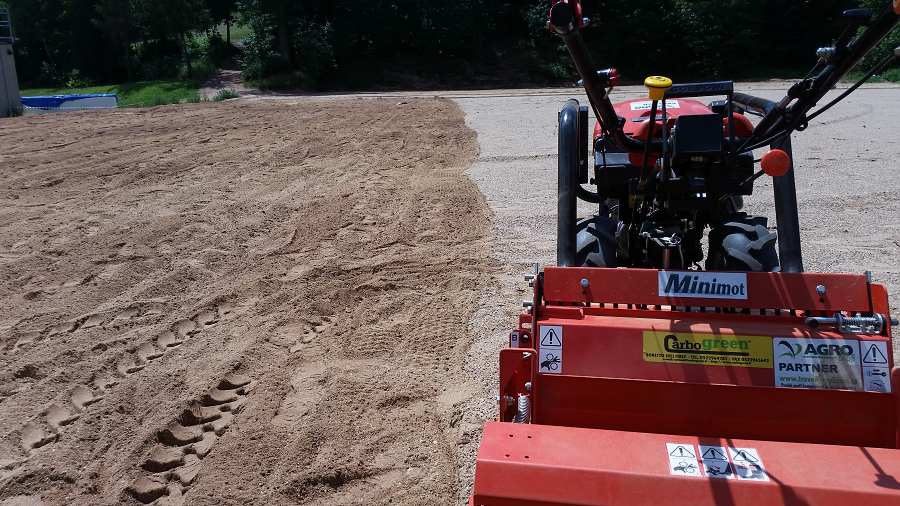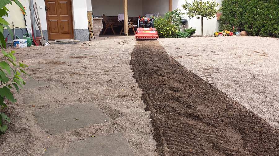 Před založením jakéhokoli druhu trávníku by obvzláště v oblastech s těžkou půdou měla být provedena kultivace spojená s propískováním. Za ideální poměr považuji 1:1 zeminy s pískem, je to poměr, kdy je tato propískovaná zemina schopna maximálně zádržovat vodu. Propískování, promíchání zeminy a písku se provádí trávníkovým zakladačem do hloubky 12-13 cm...více informací ve článku Kultivace vegetační vrstvy...