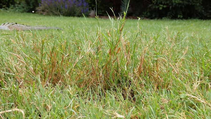 - Zaplevelení lipnicí roční (…více o lipnici roční + foto), zaplevelení nešlechtěnou kostřavou rákosovitou (…více o kostřavě rákosovité + foto) nebo ježatkou kuří nohou (…více o ježatce kuří noze + foto) – rozhodnutí jestli renovovat, nebo rekonstruovat závisí na stupni zaplevelení a velikostí a hustotě trsů. Jestliže je lipnice roční, nebo kostřava rákosovitá v trávníku ojediněle, omezil bych ji renovací s dosevem, ježatka se dá intenzivní sečí vysekat. Při masivním rozšíření ježatky kuří nohy v trávníku bych zvolil rekonstrukci trávníku.