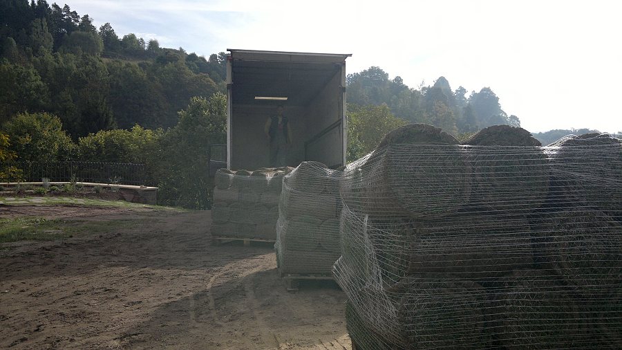 - Dále je nutné vědět, kolik metrů trávníkového koberce jste schopni v jeden den reálně položit, neboť ve smotaném stavu a zejména za teplého počasí by se trávníkové koberce měly položit do 24 hodin od sloupnutí. V opačném případě hrozí nebezpečí zapaření a vzniku patogenu vedoucímu k