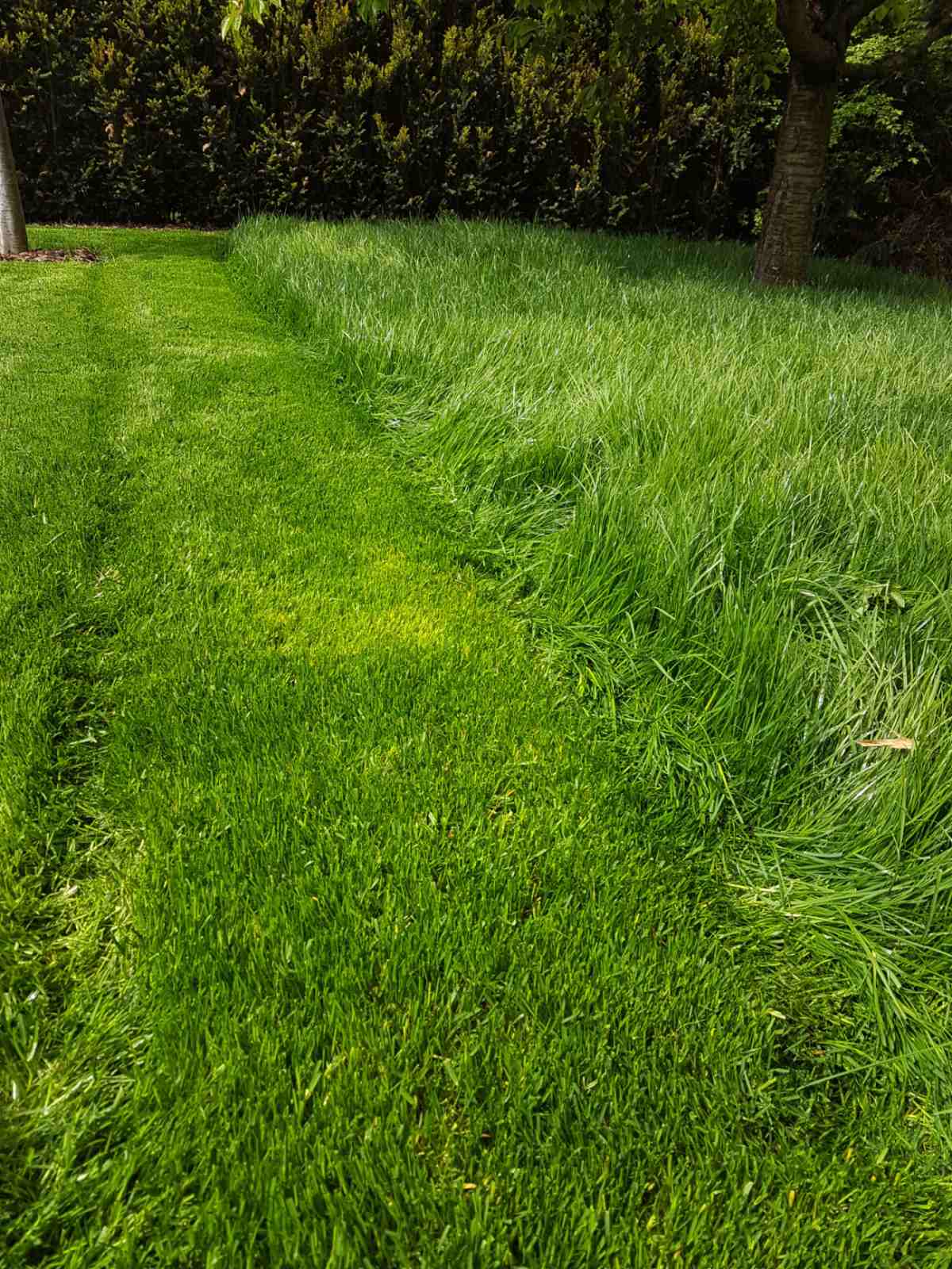- vždy jen o max. 1/3 celkové výšky listů trávníku. Při postupném snižování výšky přerostlého trávníku sekejte každý druhý den